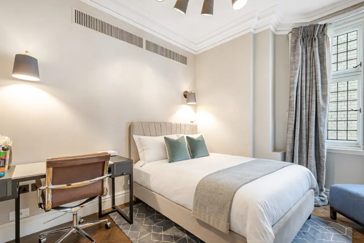 The expansive, light-filled open-plan living area features floor-to-ceiling windows and a state-of-the-art chef’s kitchen with Calacatta marble and professional-grade appliances. Retreat to three lavish bedroom suites; the master offers a spa-inspired en-suite with a deep soaking tub and rainfall shower. Fully integrated smart home technology provides effortless control. Uniquely for this central location, it includes secure, private parking. A perfect, convenient escape for discerning guests seeking world-class luxury and immediate access to Mayfair’s finest boutiques and dining.