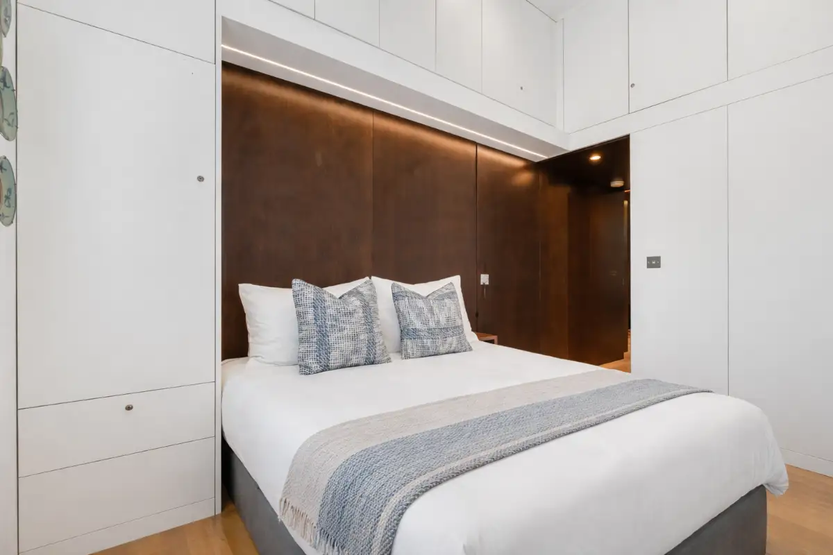 The private bedroom offers a peaceful sanctuary with a plush queen-sized bed, ensuring total comfort after a busy day. This is complemented by a sleek, spa-style walk-in shower. The supreme location, close to both Bayswater and Queensway tube stations, provides exceptional city connectivity, making this property the ultimate, convenient base for discerning travellers seeking a premium and effortlessly accessible London stay.