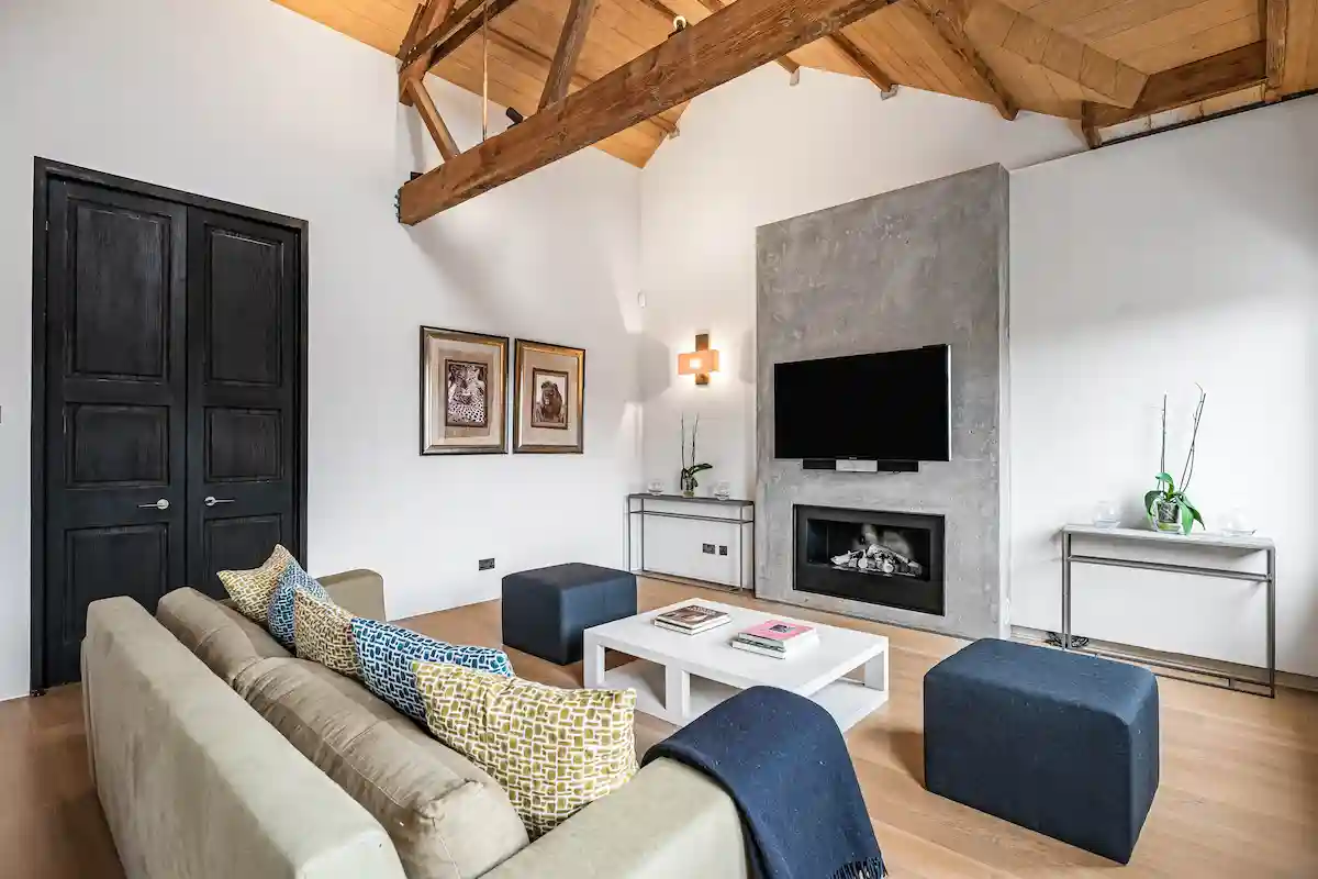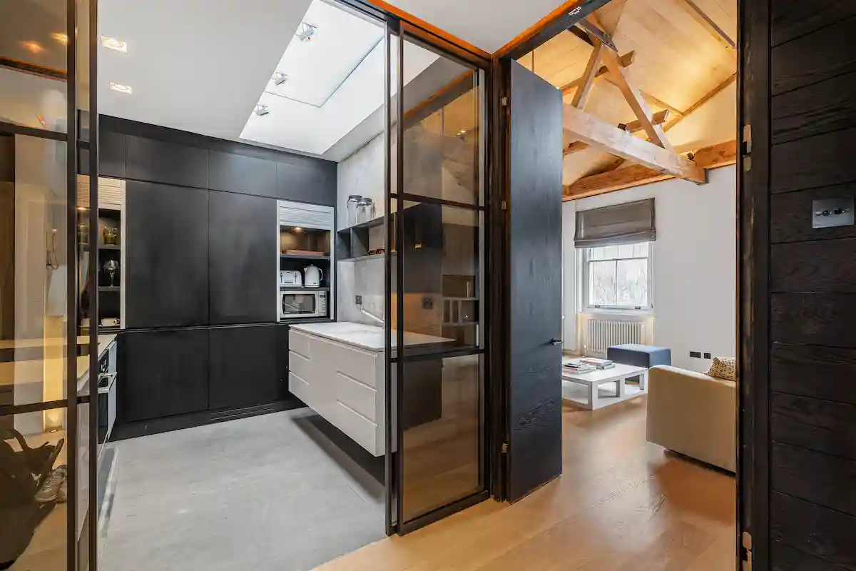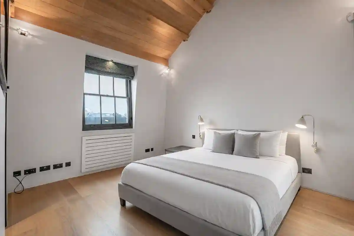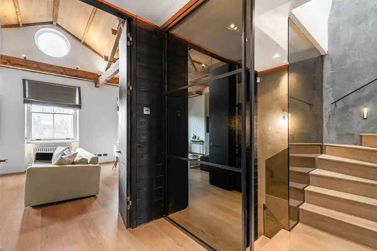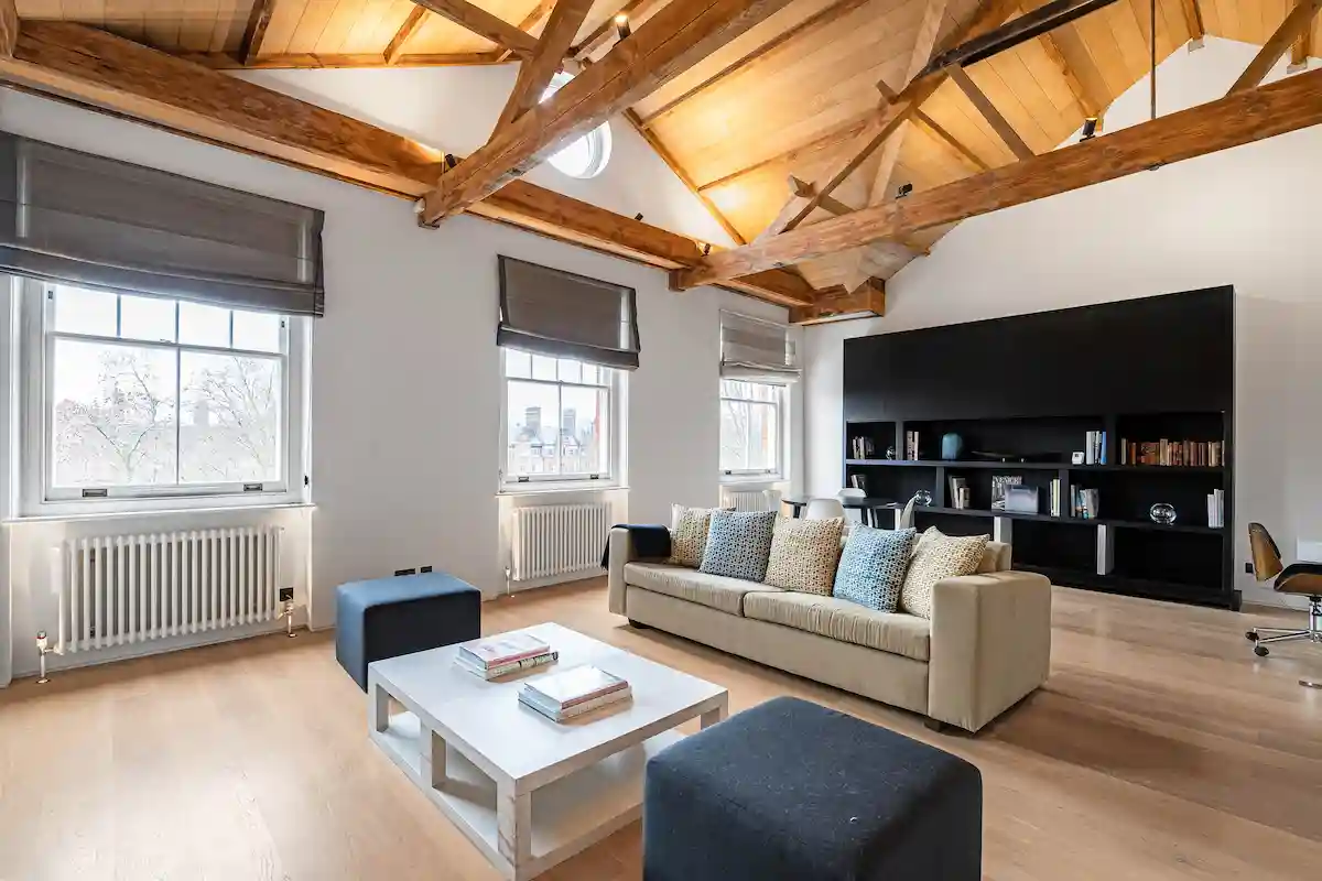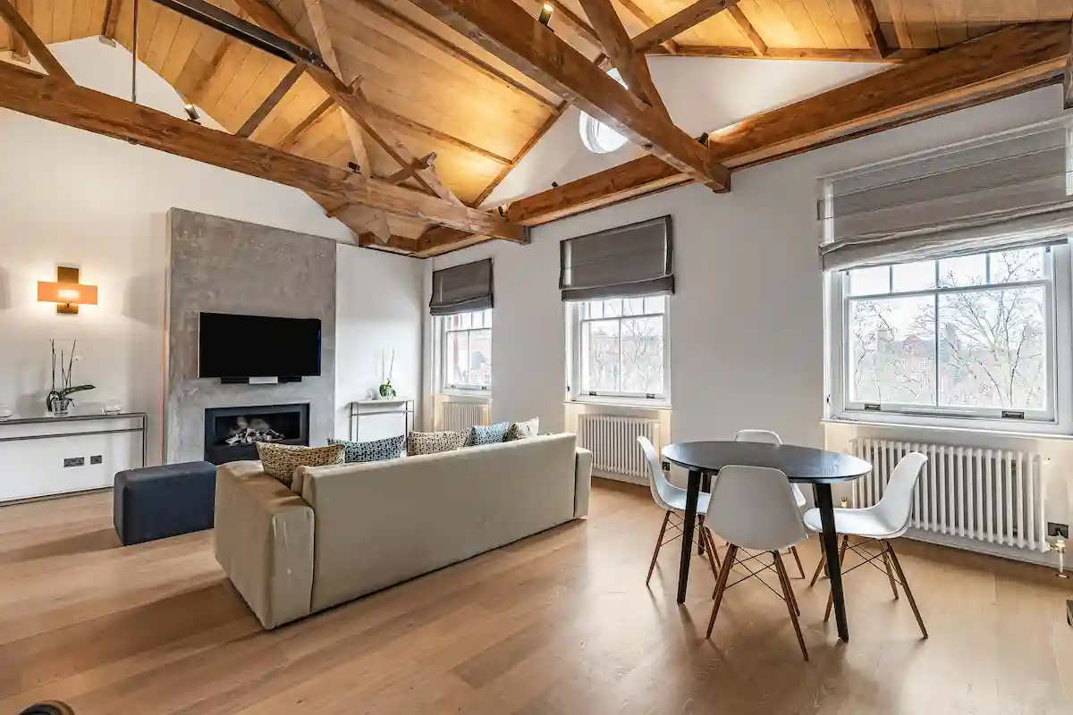 Set overlooking the prestigious Cadogan Square, this exceptional three-bedroom Chelsea residence offers a rare combination of architectural drama, expansive private outdoor space, and uninterrupted panoramic views across London, including direct sightlines to the London Eye. Contemporary in design yet rich in character, the home features soaring ceilings, a sculptural glass spiral staircase, exposed beams, bespoke interiors, and floor-to-ceiling windows that flood the space with natural light.