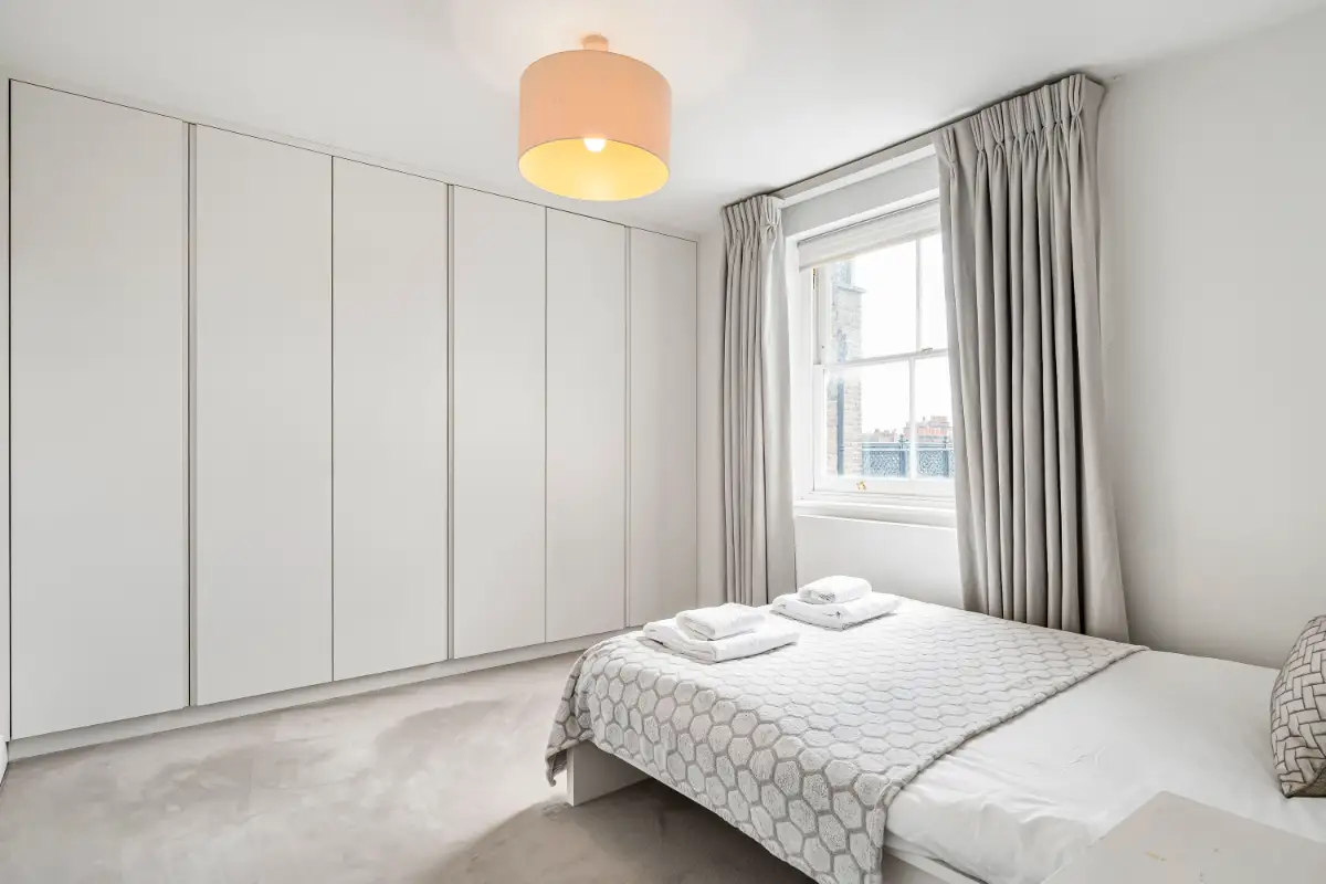 Experience refined London luxury in this bright two-bedroom penthouse on exclusive Cadogan Square, Chelsea. Overlooking serene private gardens, the residence features modern design, a cosy living and dining area, a fully equipped kitchen, and a sleek walk-in shower. Comfortably accommodating up to four guests, it blends style, functionality, and elegance in every detail.