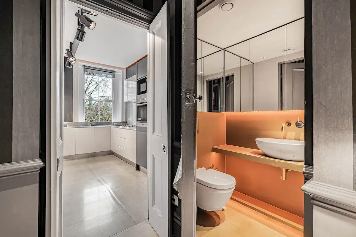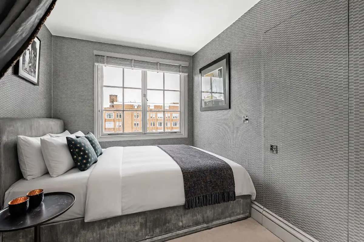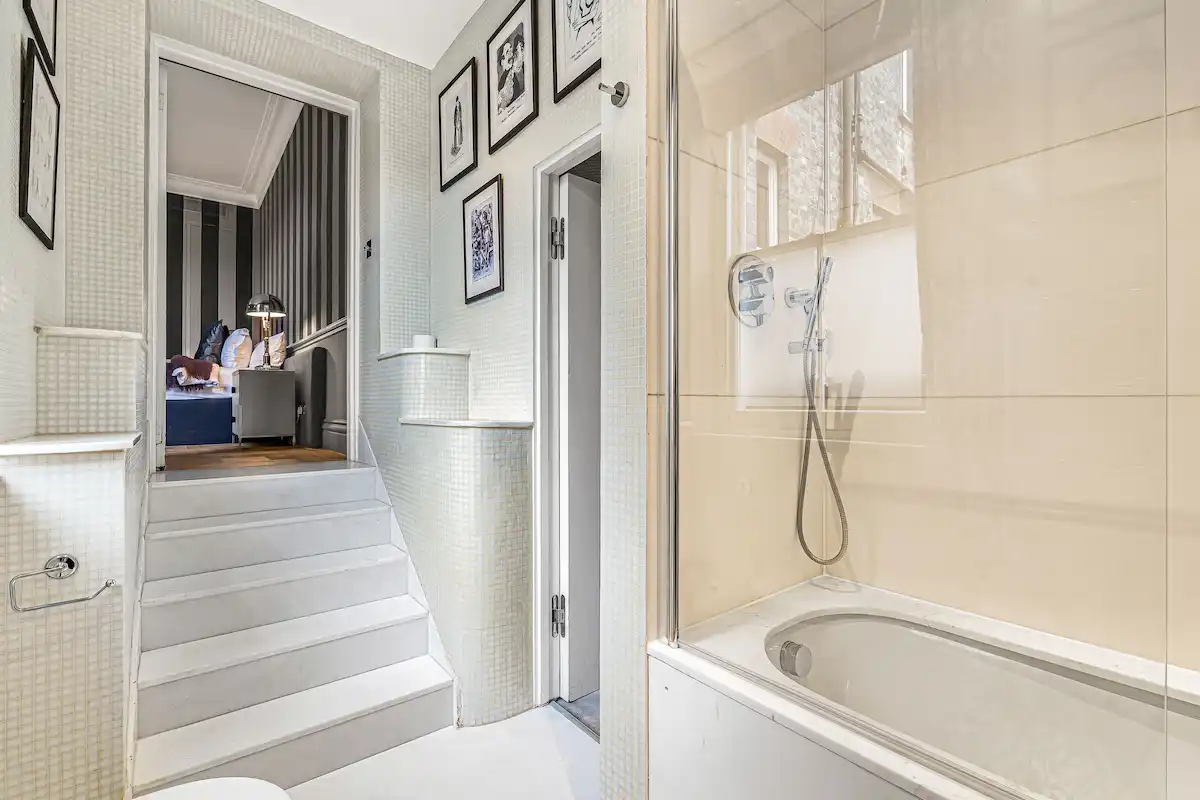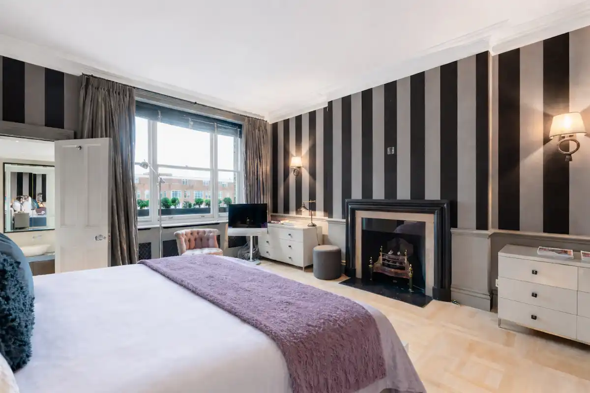 Perfectly positioned moments from Sloane Square and the King’s Road, this sophisticated retreat is ideal for discerning leisure or business travellers seeking a quiet yet central London base. Both bedrooms are serene sanctuaries, including a principal suite with king-size bed, elegant fireplace, and spa-like marble bathroom, and a second double bedroom with its own rainfall-shower ensuite.
