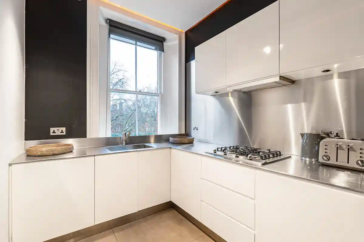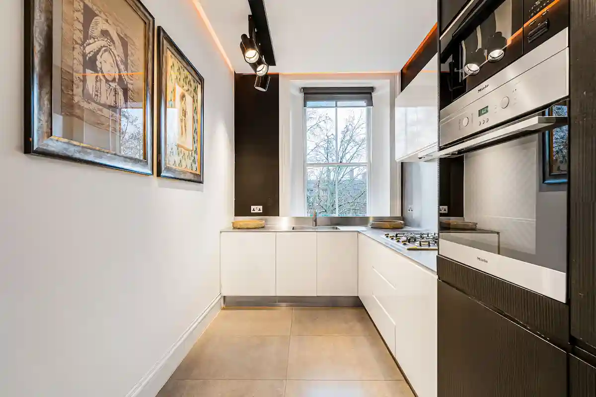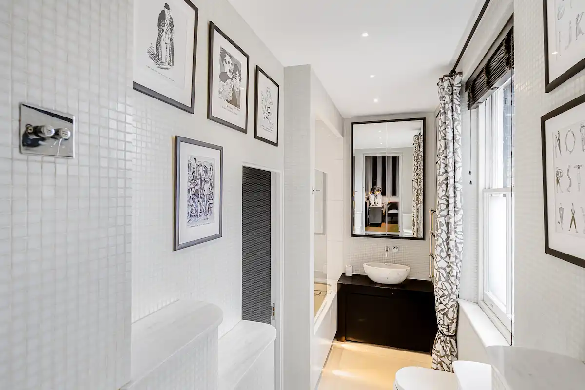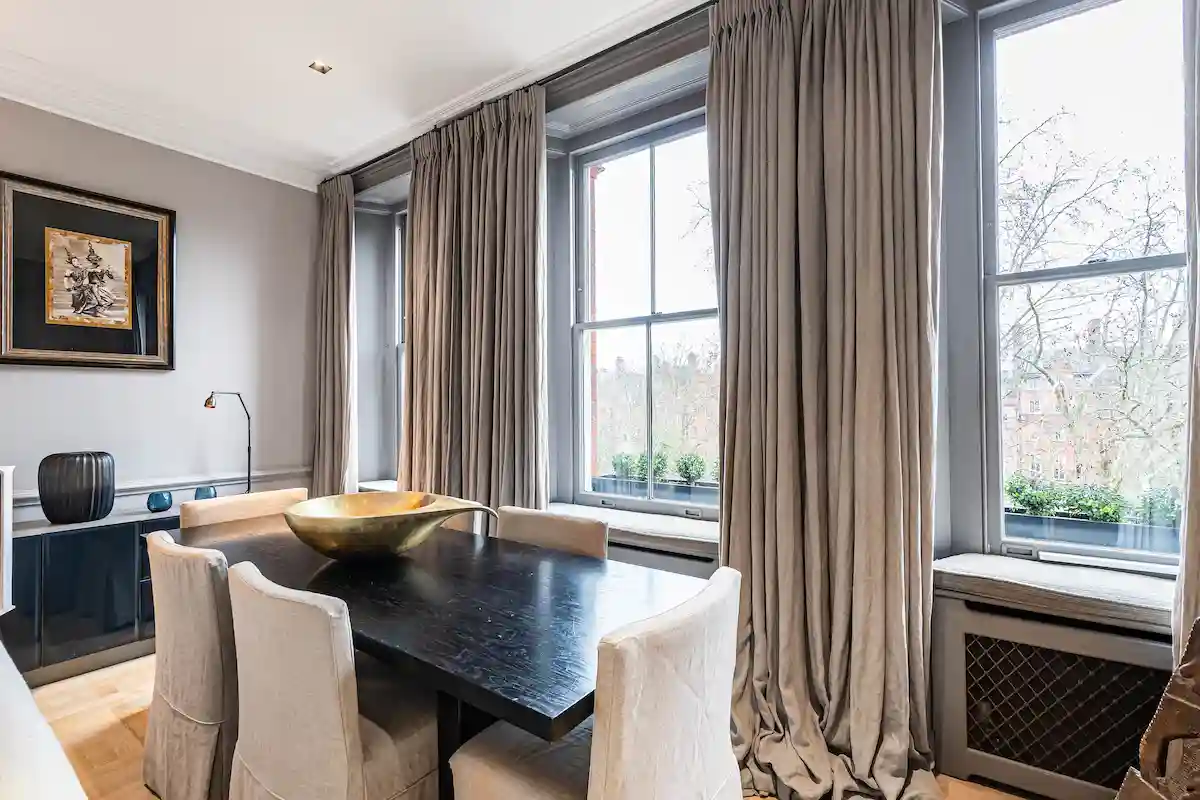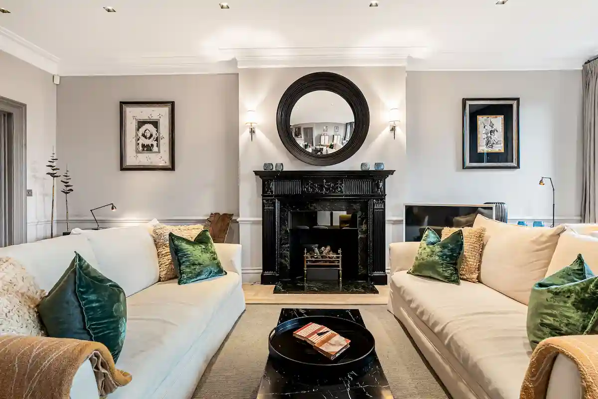 Perfectly positioned moments from Sloane Square and the King’s Road, this sophisticated retreat is ideal for discerning leisure or business travellers seeking a quiet yet central London base. Both bedrooms are serene sanctuaries, including a principal suite with king-size bed, elegant fireplace, and spa-like marble bathroom, and a second double bedroom with its own rainfall-shower ensuite.