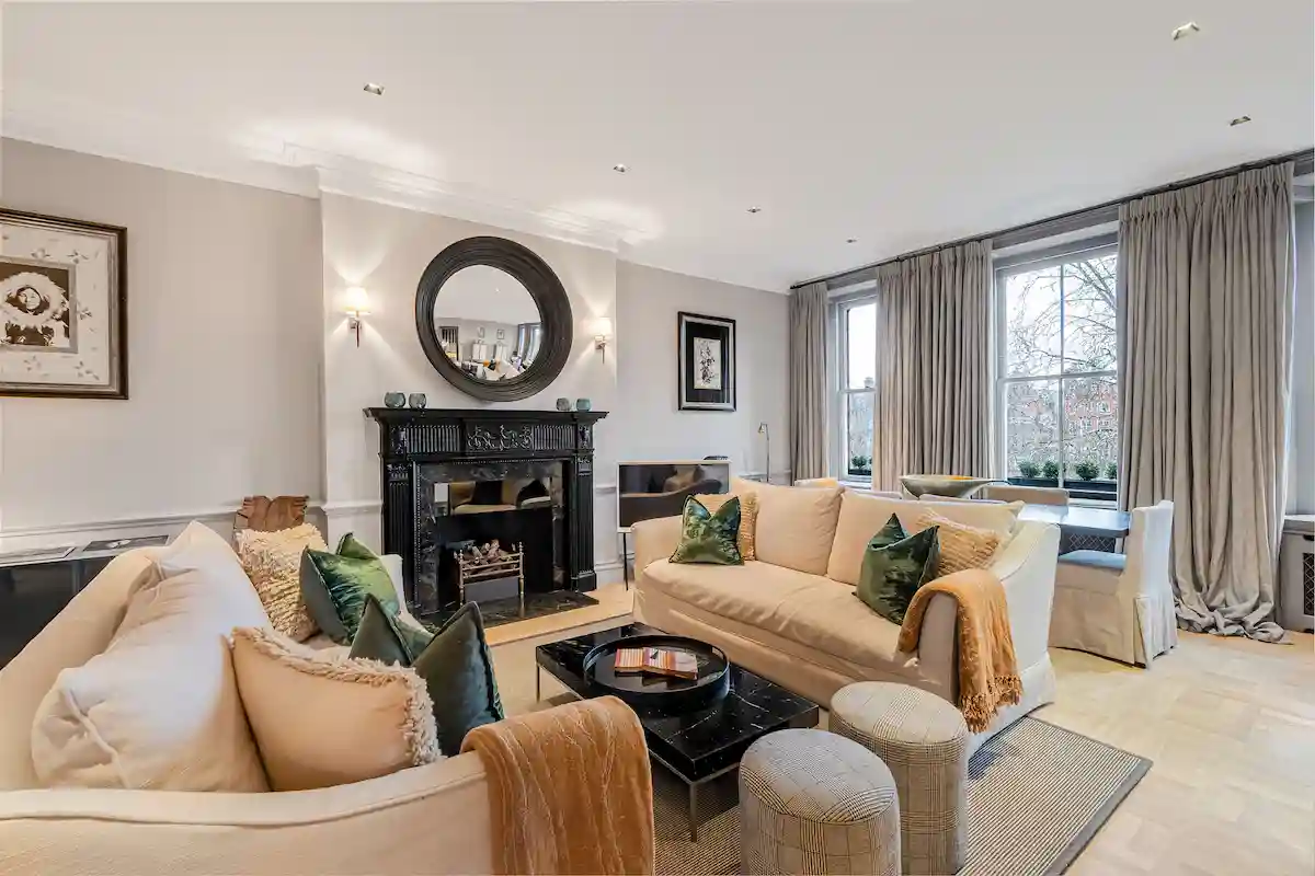 Overlooking the prestigious Cadogan Square, this exquisitely designed two-bedroom, two-bathroom Chelsea residence offers an exceptional blend of privacy, elegance, and contemporary luxury. With rare private lift access directly into the apartment, the home immediately sets a tone of exclusivity and refinement. Expansive living and dining spaces, a sleek designer kitchen with premium integrated appliances, and two marble ensuite bathrooms create a seamless balance between style and comfort. Large windows frame beautiful garden square views, while curated interiors, bespoke finishes, and a cohesive palette evoke a calm, five-star residential atmosphere throughout.