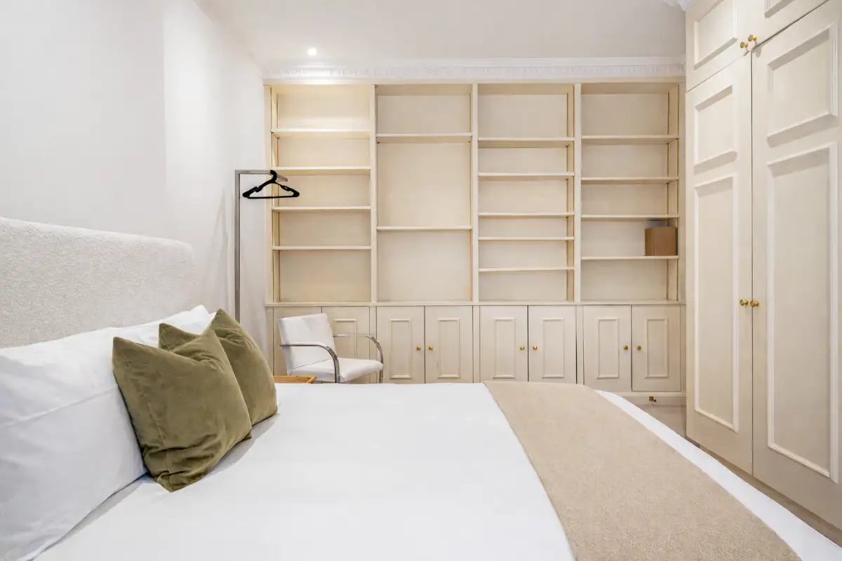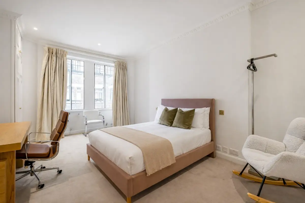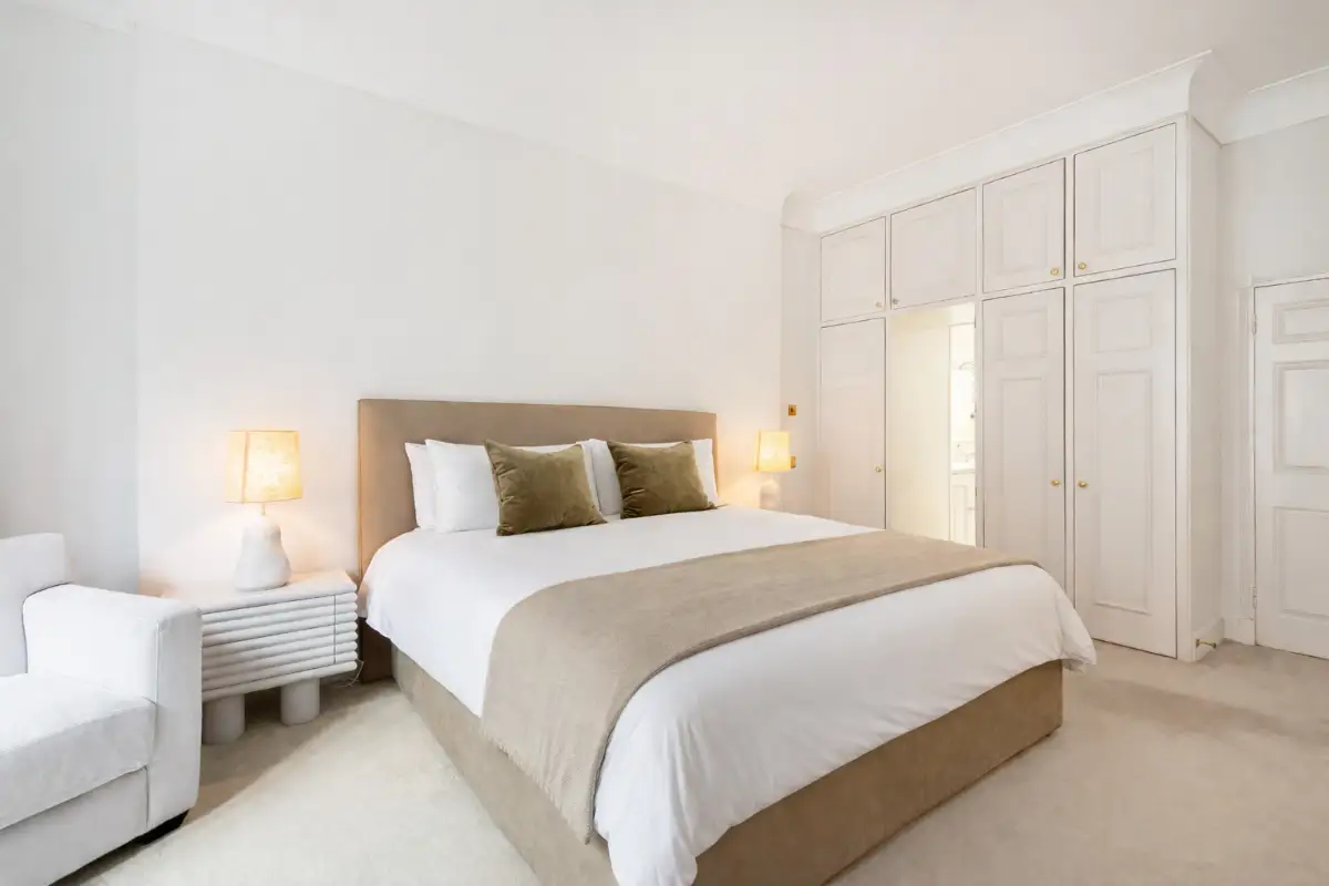Three serene bedrooms include a king-size ensuite, complemented by a twin-sink bathroom, an additional WC, and ample storage. Perfect for families or groups, this apartment delivers true Mayfair sophistication, blending elegance, comfort, and an enviable central location for an unforgettable London stay.