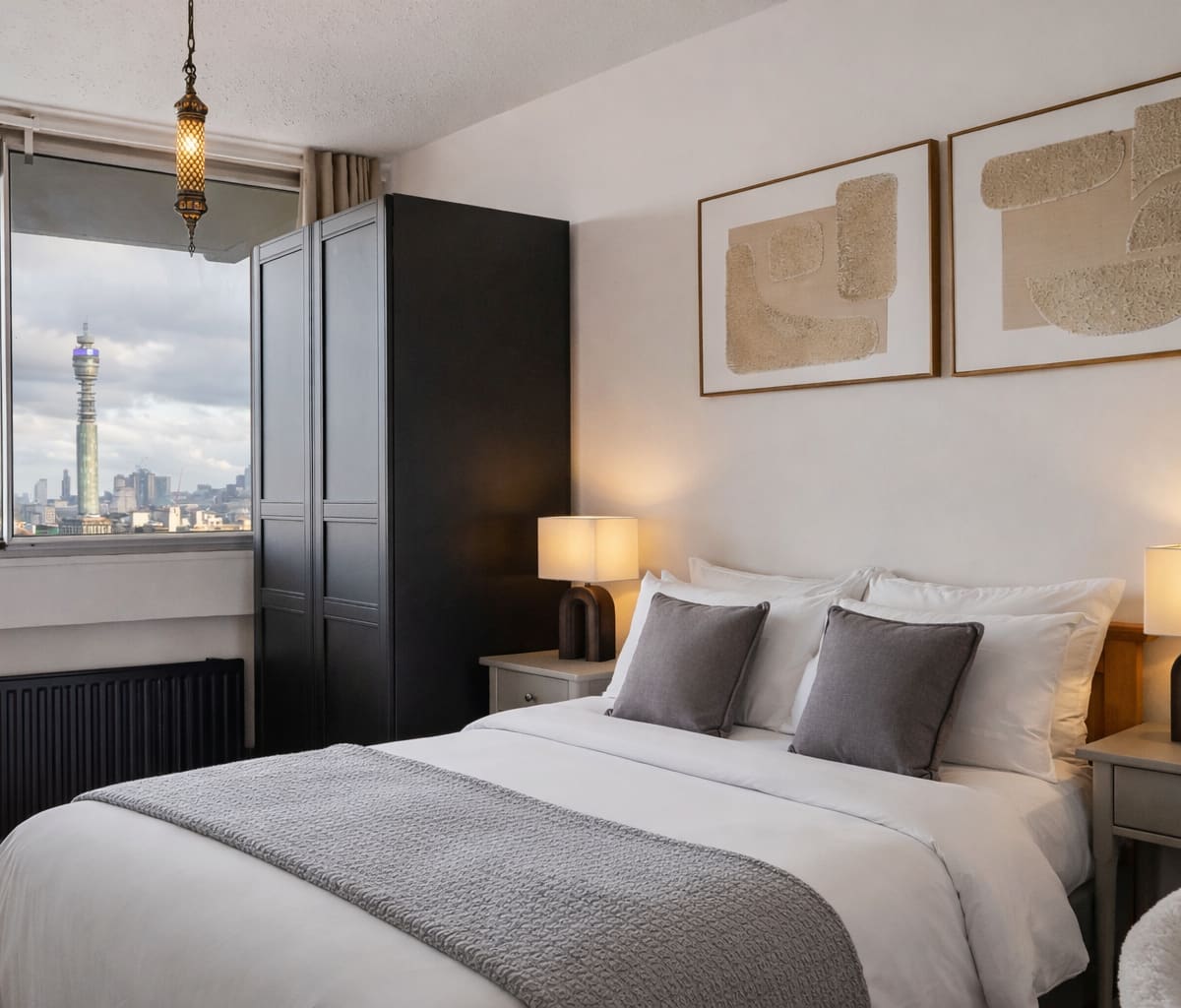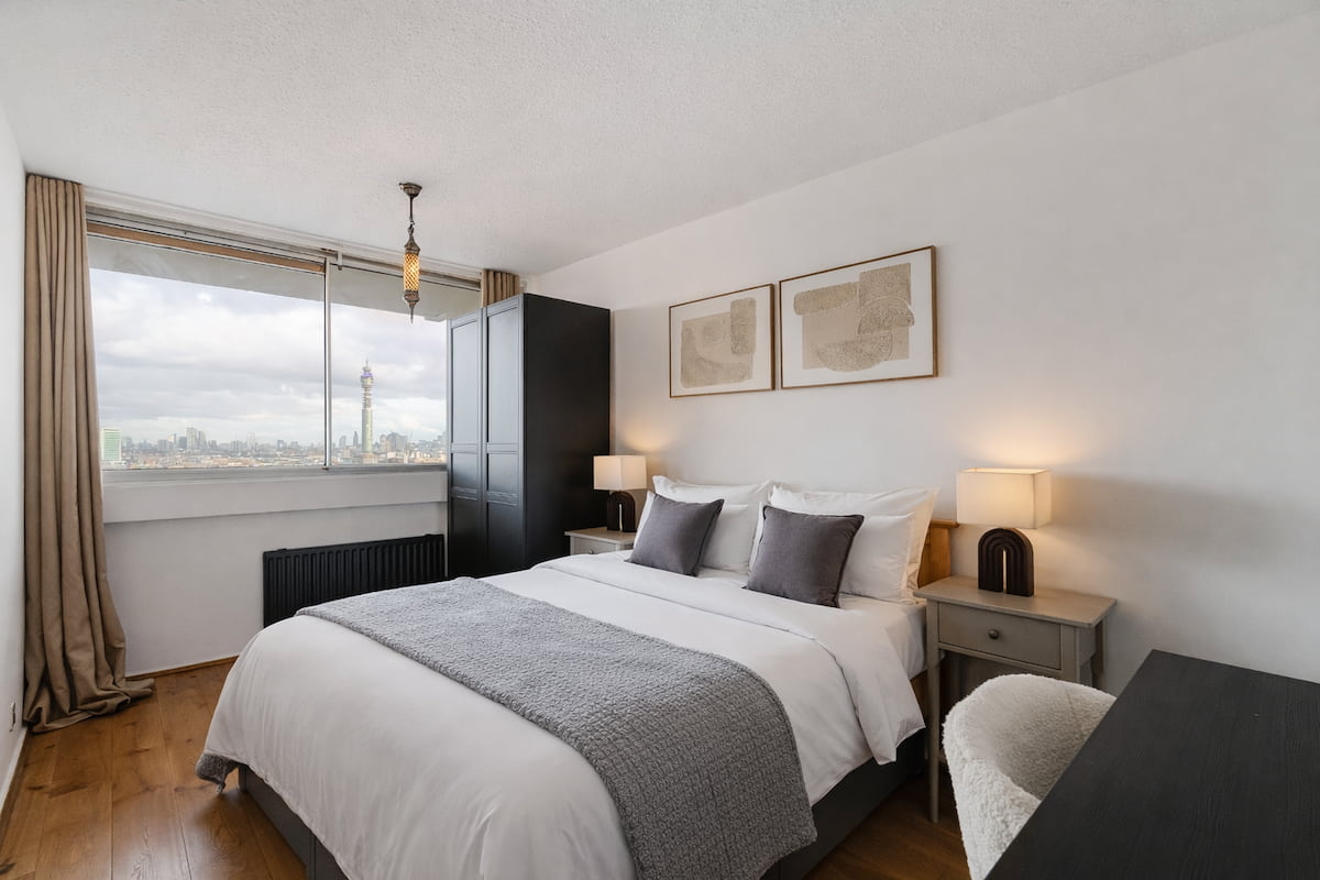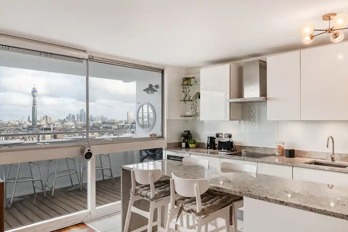 Perched high above the heart of Marylebone, this breathtaking two-bedroom apartment offers an exceptional blend of luxury, privacy, and panoramic London views. Enjoy sweeping vistas across Hyde Park, the BT Tower, and The Shard from both bedrooms and your own private balcony, complete with BBQ for al fresco dining and sunset drinks. Designed as a refined urban retreat, the home features a spa-style rainfall shower bathroom, lift access, and a rare two-level layout that enhances space and tranquillity.