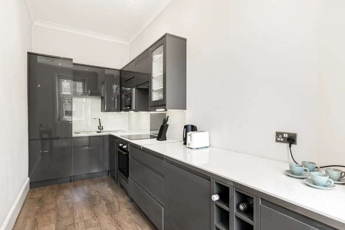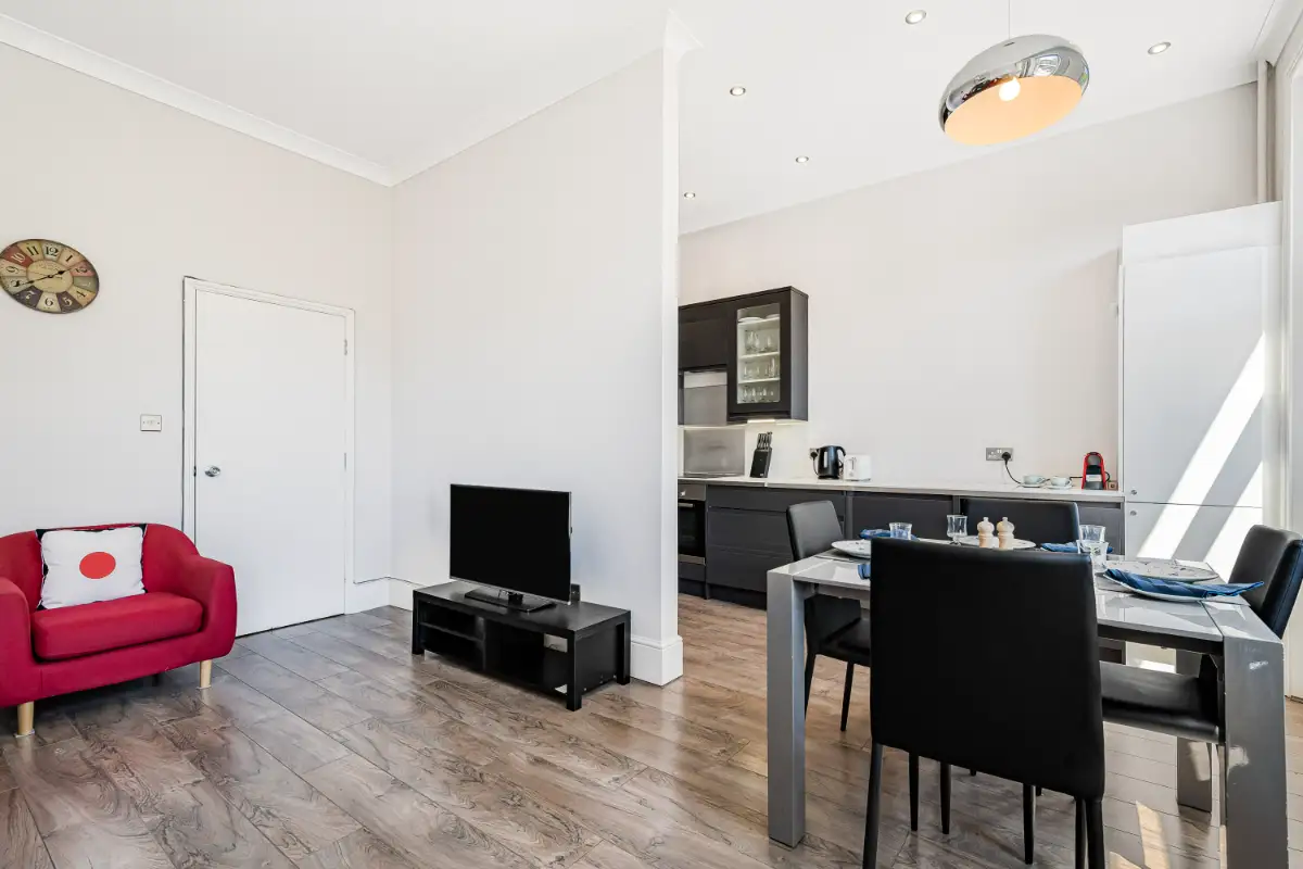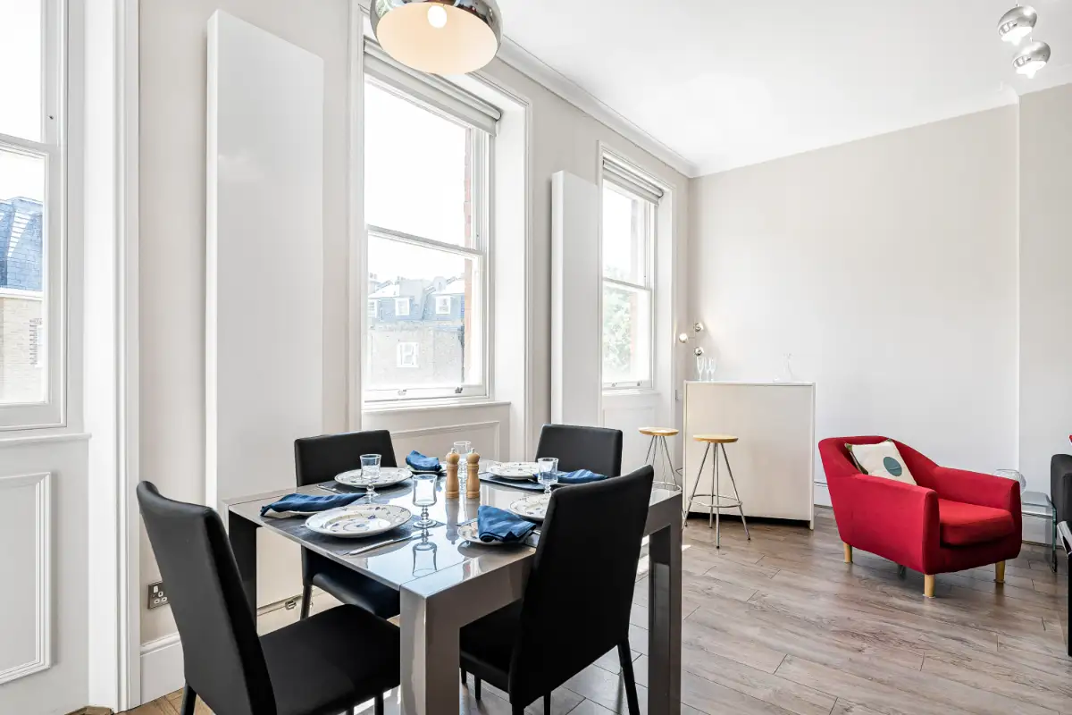 Experience classic London luxury in this elegant two-bedroom, two-bathroom apartment on prestigious Nevern Square, Kensington. Bathed in natural light, it features large windows with leafy views, designer furnishings, an open-plan layout, and a high-spec kitchen, complemented by portable A/C for added comfort. Every detail has been thoughtfully curated to provide a sophisticated and welcoming home in one of London’s most desirable neighbourhoods.