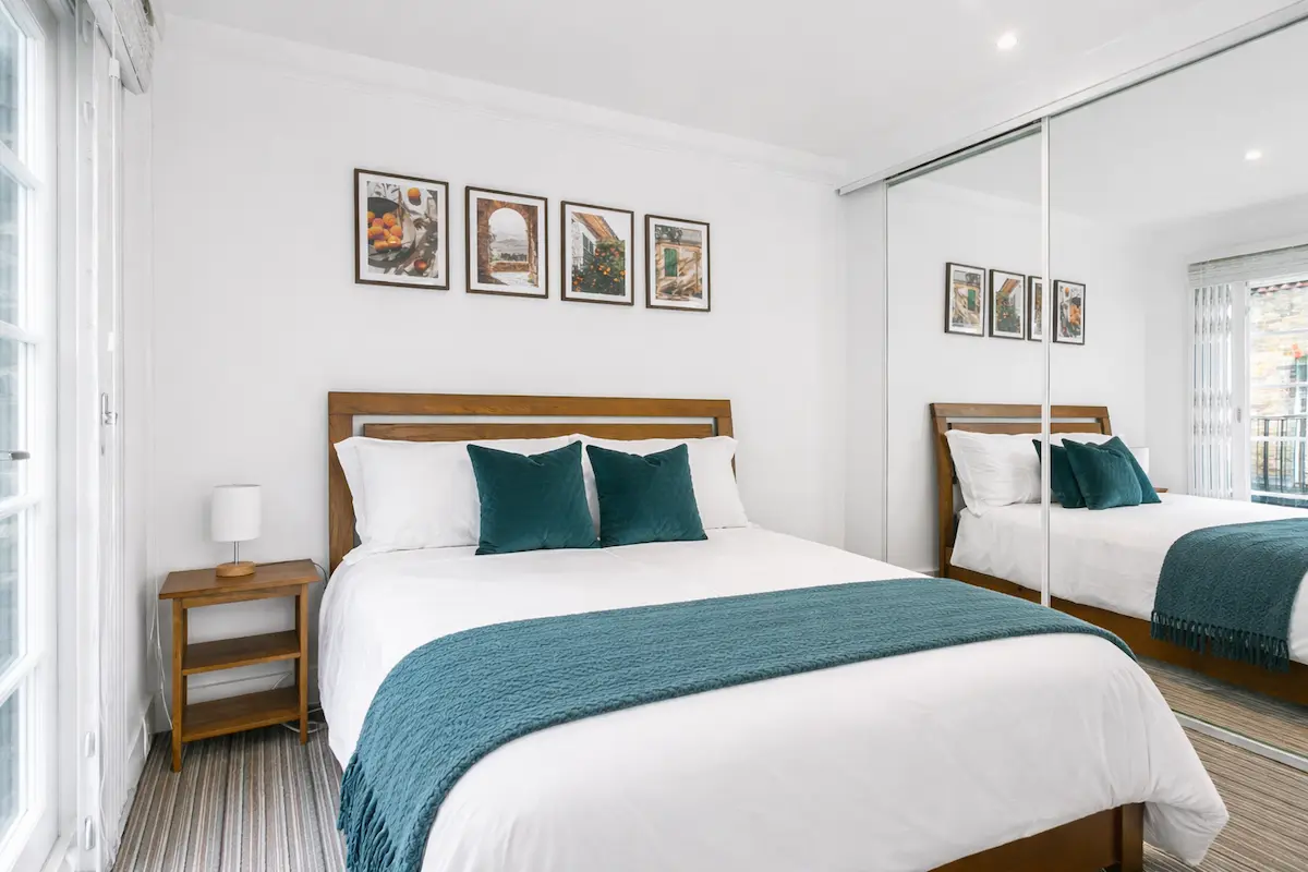 Located just 2 minutes from Paddington Station, this chic two-bedroom, two-bathroom home offers an unbeatable blend of comfort and convenience. Flooded with natural light, the open-plan living area features a cozy sofa, flat-screen TV, and dining space perfect for meals or work. The modern kitchen is fully equipped with stainless steel appliances, including a dishwasher and washing machine. Each bedroom is a tranquil retreat, with hotel-quality linens, ample storage, and private en-suites with walk-in showers.