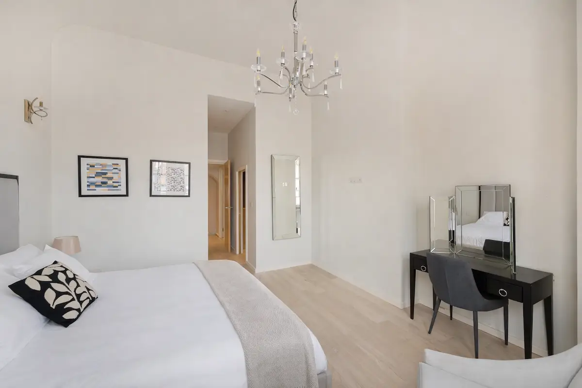 From the moment you step inside, you’ll be captivated by the apartment’s 14ft-high ceilings, creating an immediate sense of space and luxury.