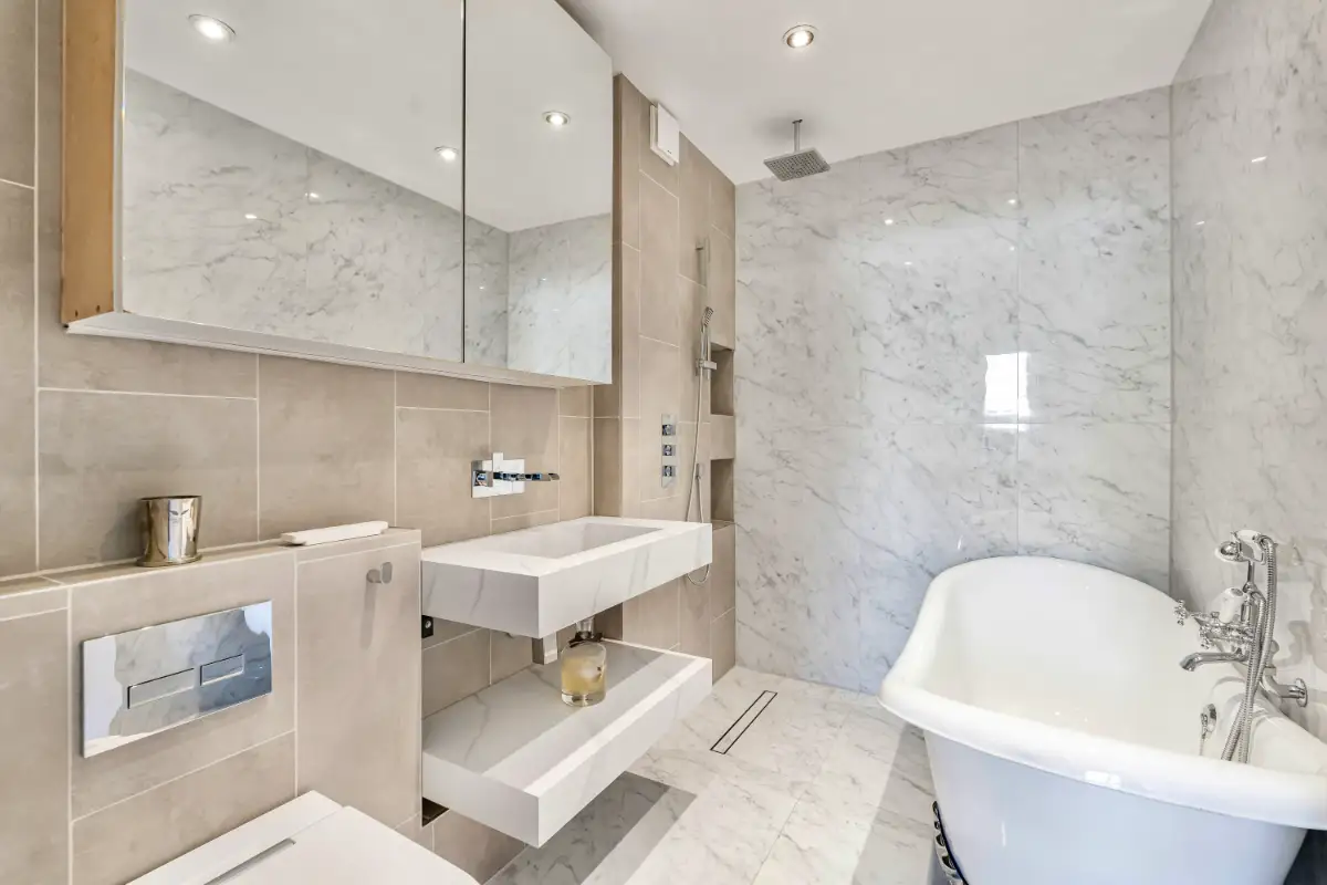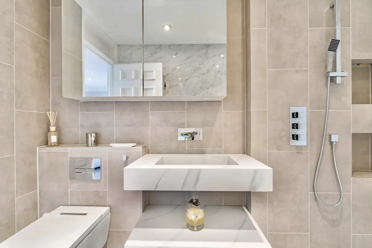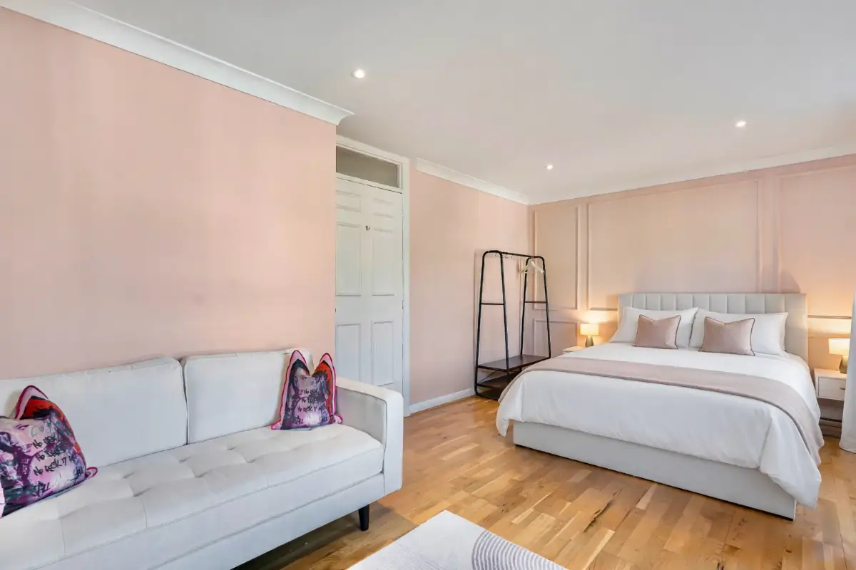 A fully equipped kitchen opens onto a beautifully landscaped private garden, offering a serene and secluded retreat complete with outdoor dining and lounge areas. Upstairs, three well-appointed bedrooms provide comfort and privacy, including a luxurious principal suite with a spa-inspired ensuite bathroom. A standout feature is the private rooftop terrace connected to the third bedroom, offering elevated views and a tranquil escape above the city.