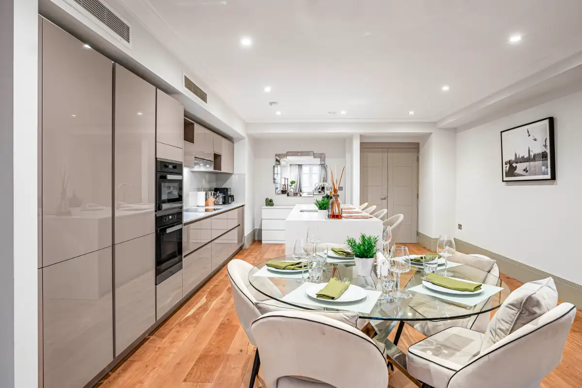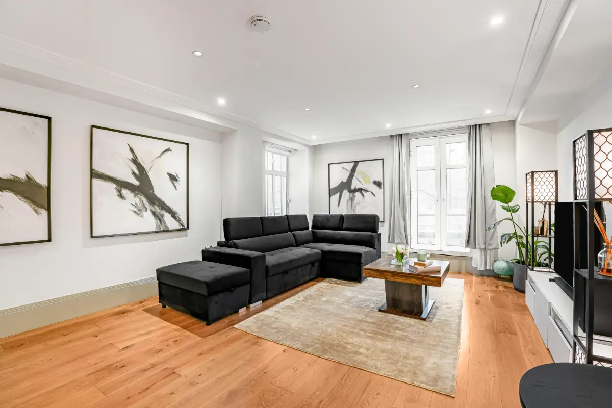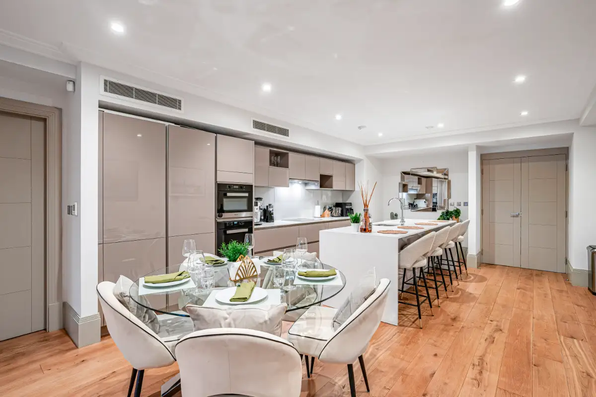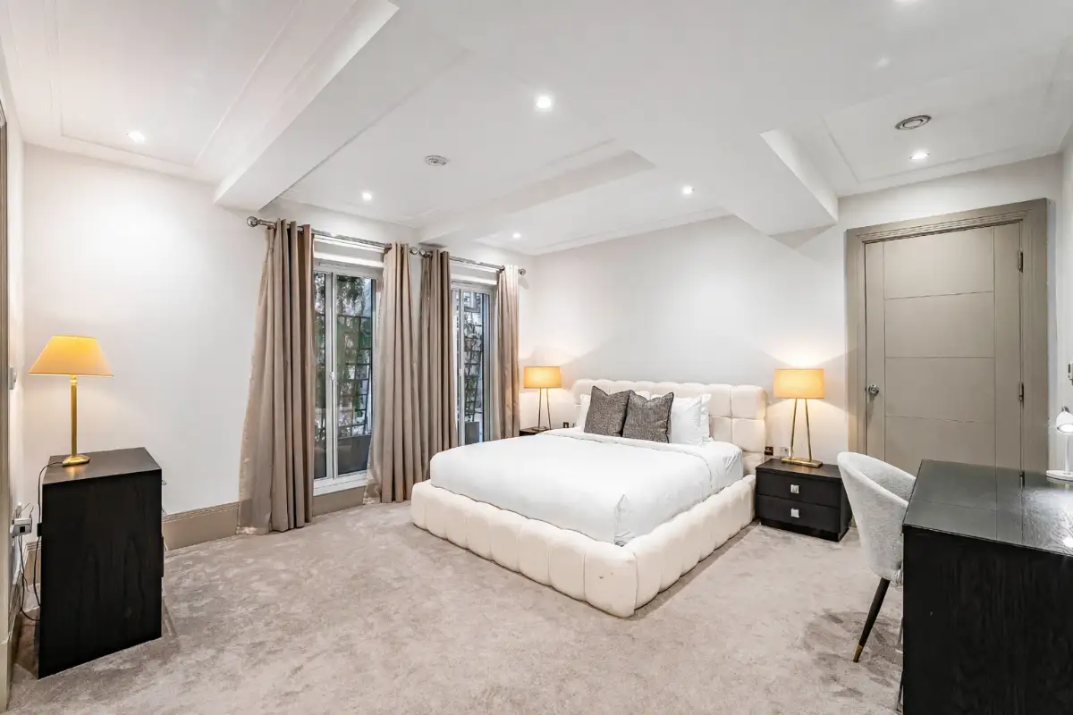 This luxury two-bedroom, 2.5-bathroom apartment is located on prestigious Park Street in the heart of Mayfair, offering an exceptional stay in one of London’s most desirable neighborhoods. Situated in a secure, elegantly maintained building with concierge service and elevator access, the residence combines comfort, privacy, and sophistication. Inside, guests will find spacious king-size ensuite bedrooms with rainfall showers, a stylish open-plan living area, a fully equipped high-end kitchen, and fast Wi-Fi.